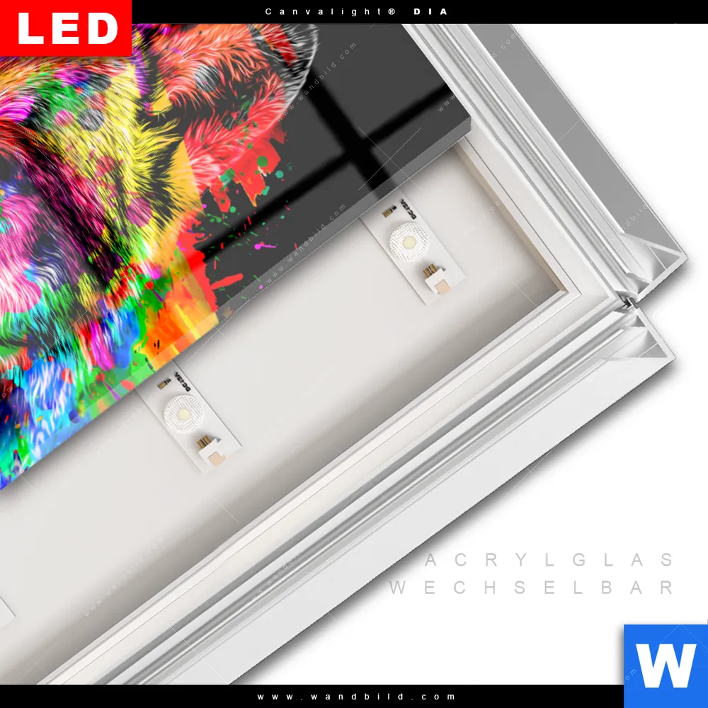 Canvalight® DIA Leuchtbild | Pop Art Wolf | Hochformat