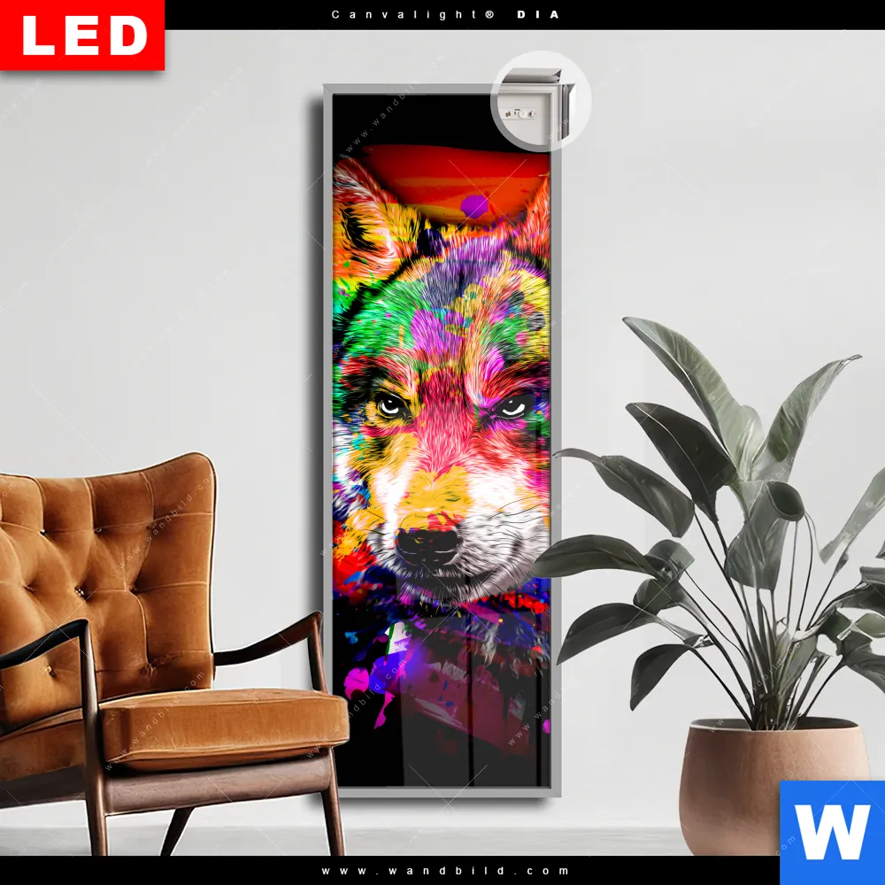 Canvalight® DIA Leuchtbild | Pop Art Wolf | Schmal