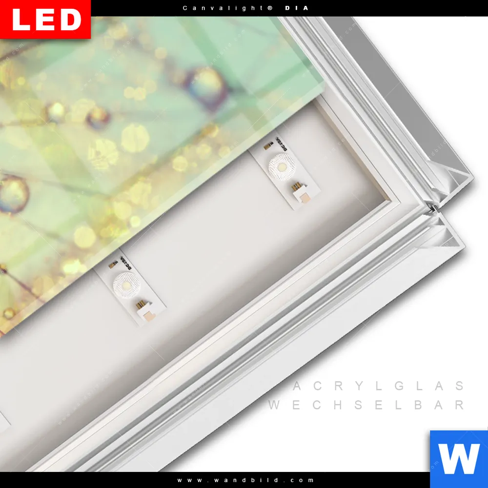 LED-Glasbild mit austauschbarem Acrylglas-Druck (Wechselbild)