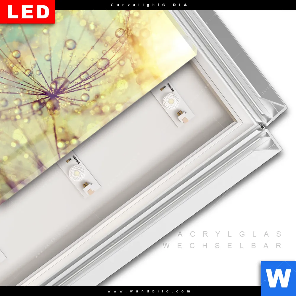 LED-Glasbild mit austauschbarem Acrylglas-Druck (Wechselbild)