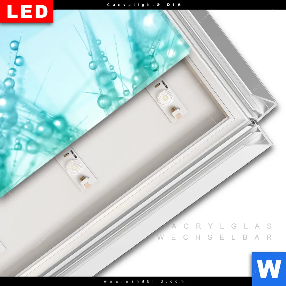 LED-Glasbild mit austauschbarem Acrylglas-Druck (Wechselbild)