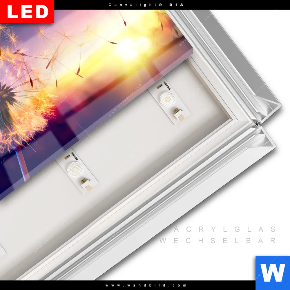 LED-Glasbild mit austauschbarem Acrylglas-Druck (Wechselbild)