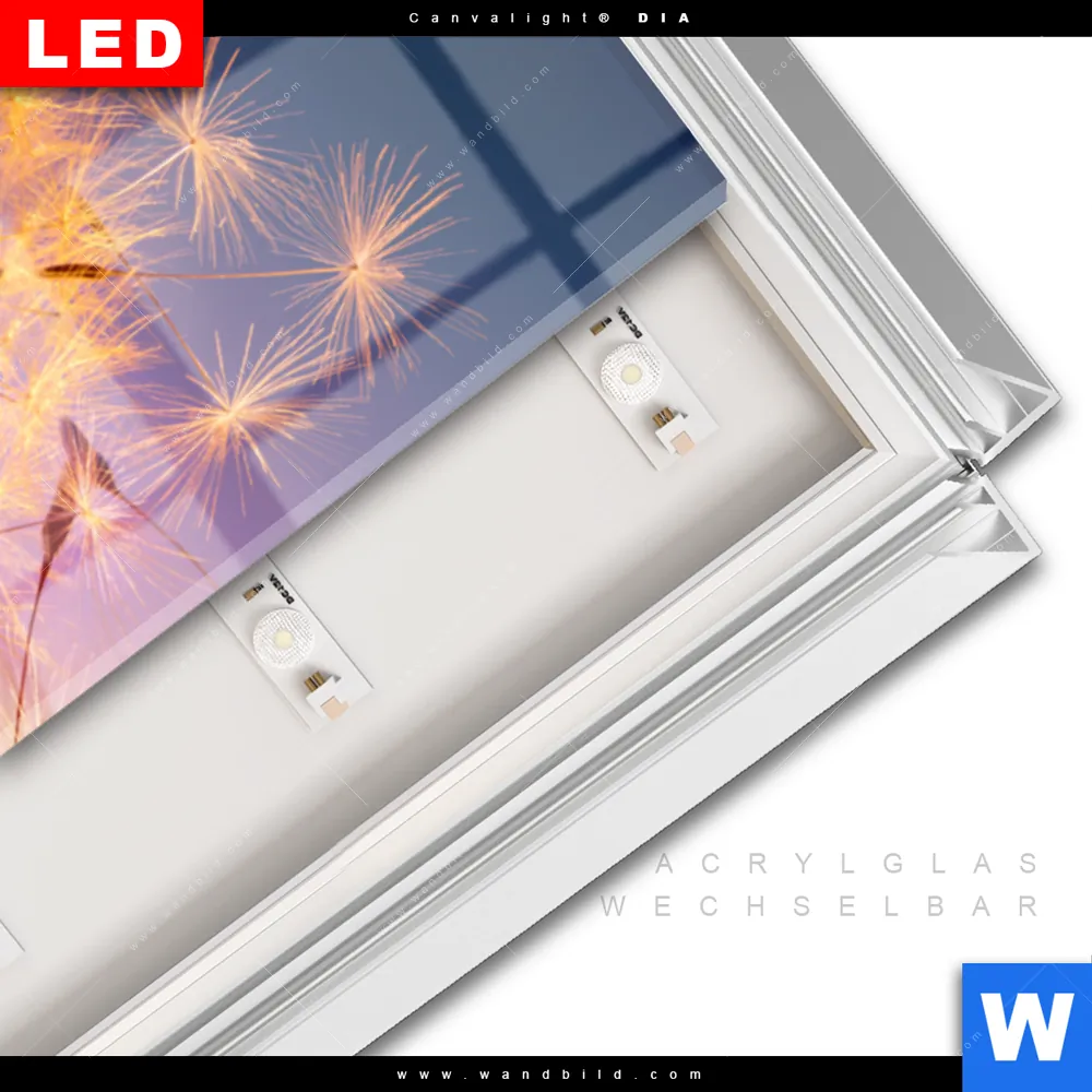 LED-Glasbild mit austauschbarem Acrylglas-Druck (Wechselbild)