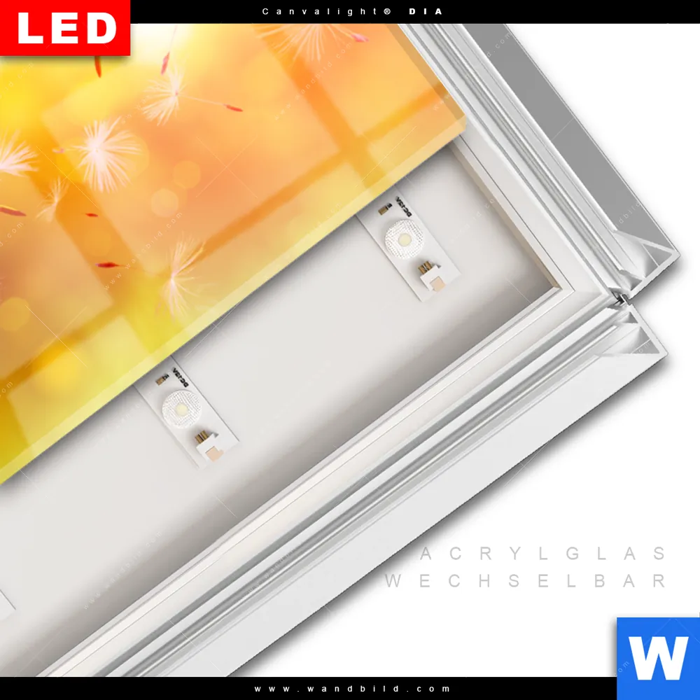 LED-Glasbild mit austauschbarem Acrylglas-Druck (Wechselbild)