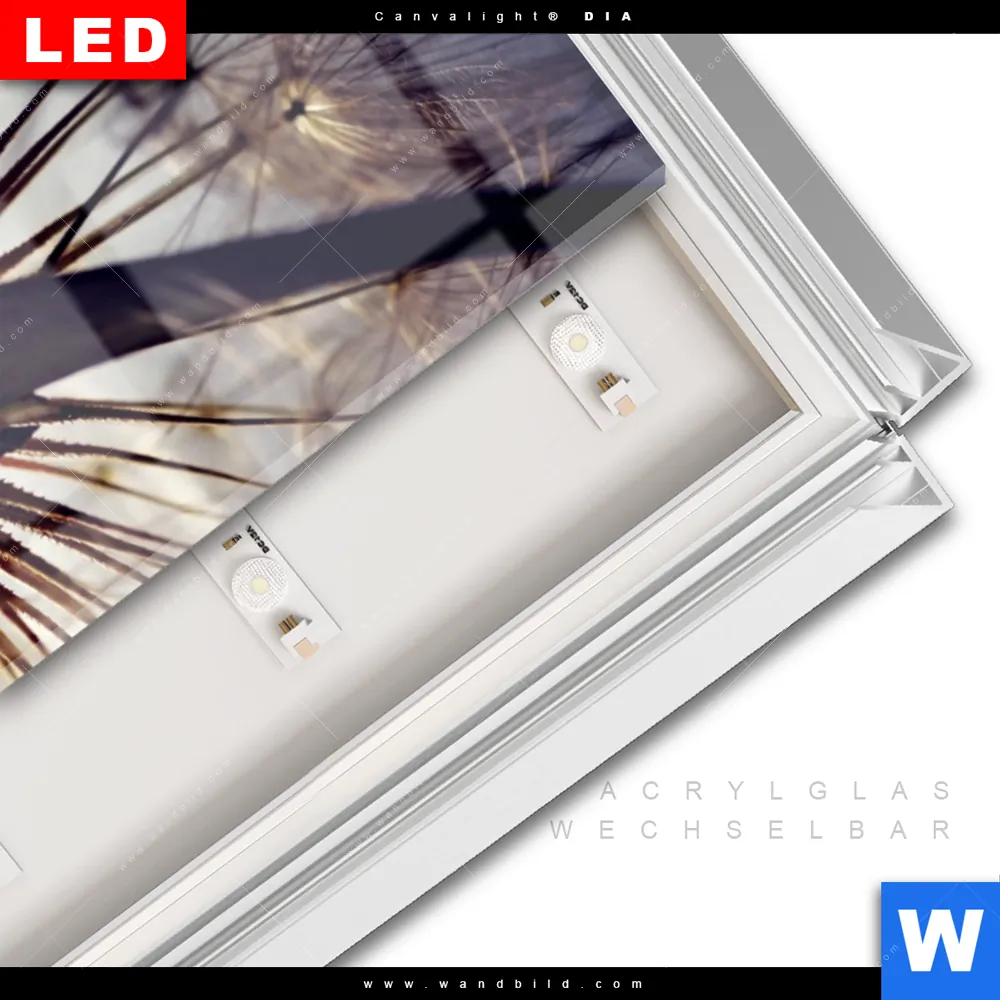 LED-Glasbild mit austauschbarem Acrylglas-Druck (Wechselbild)
