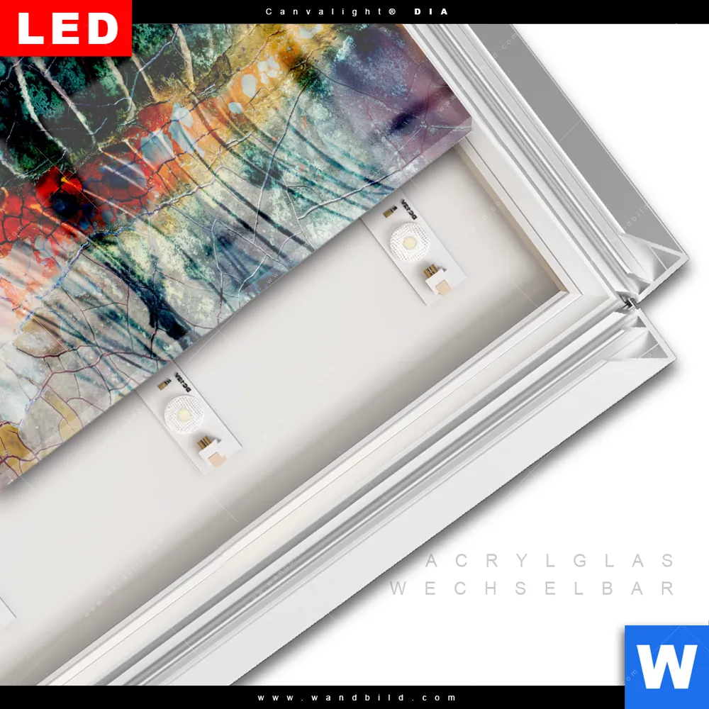LED-Glasbild mit austauschbarem Acrylglas-Druck (Wechselbild)