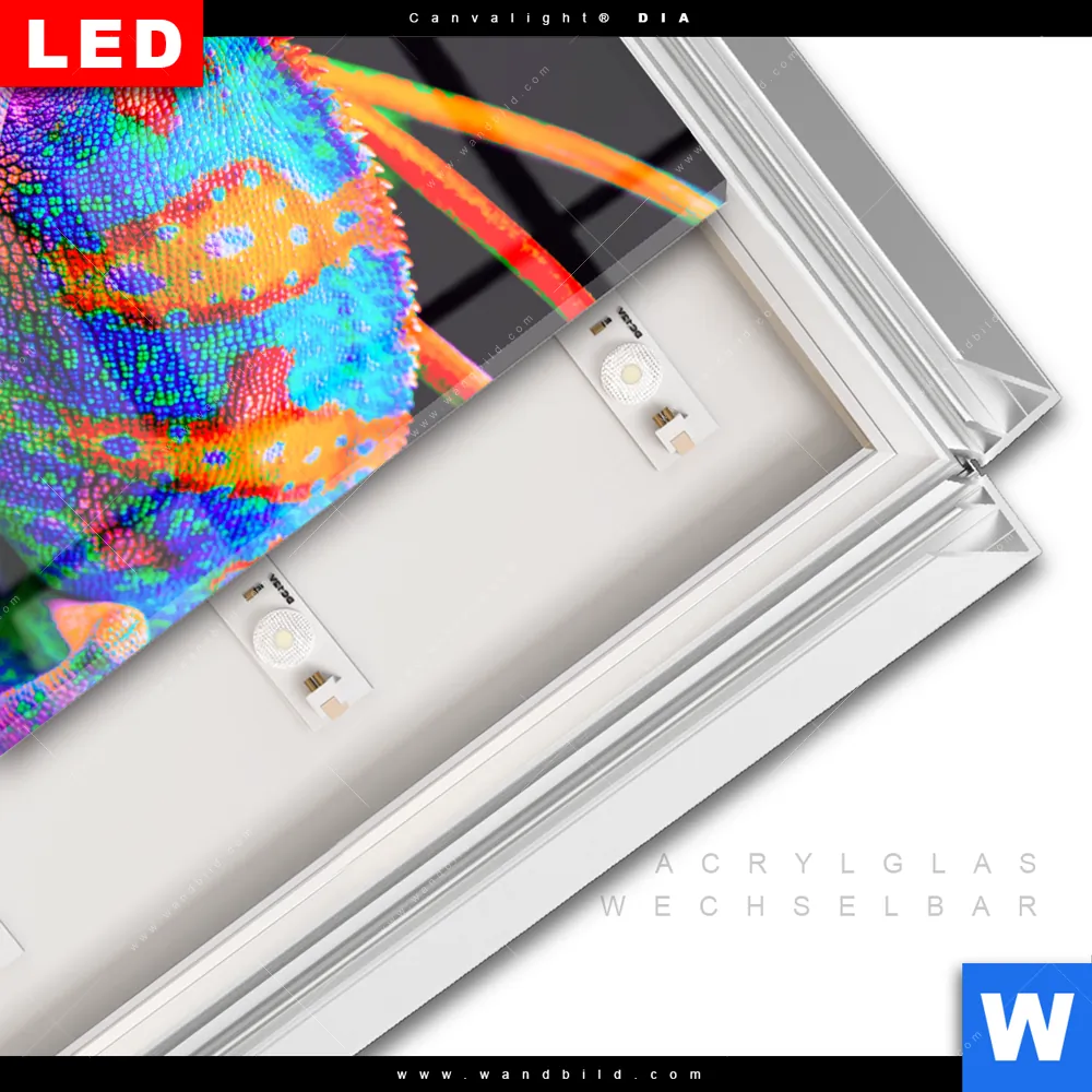 LED-Glasbild mit austauschbarem Acrylglas-Druck (Wechselbild)