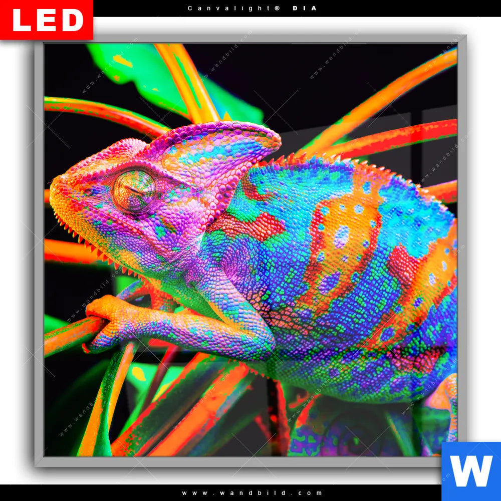 Canvalight® DIA Leuchtbild | Regenbogen Chamäleon No.2 | Quadrat