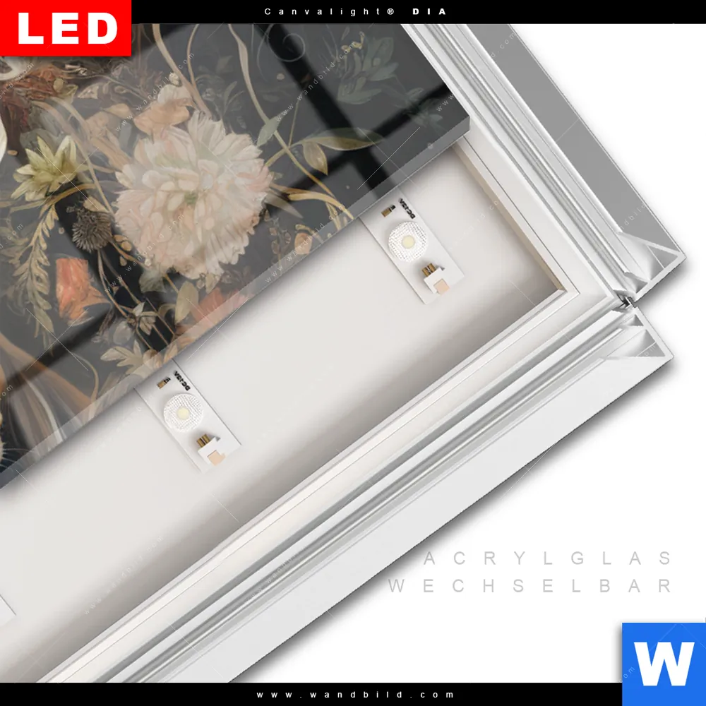 LED-Glasbild mit austauschbarem Acrylglas-Druck (Wechselbild)