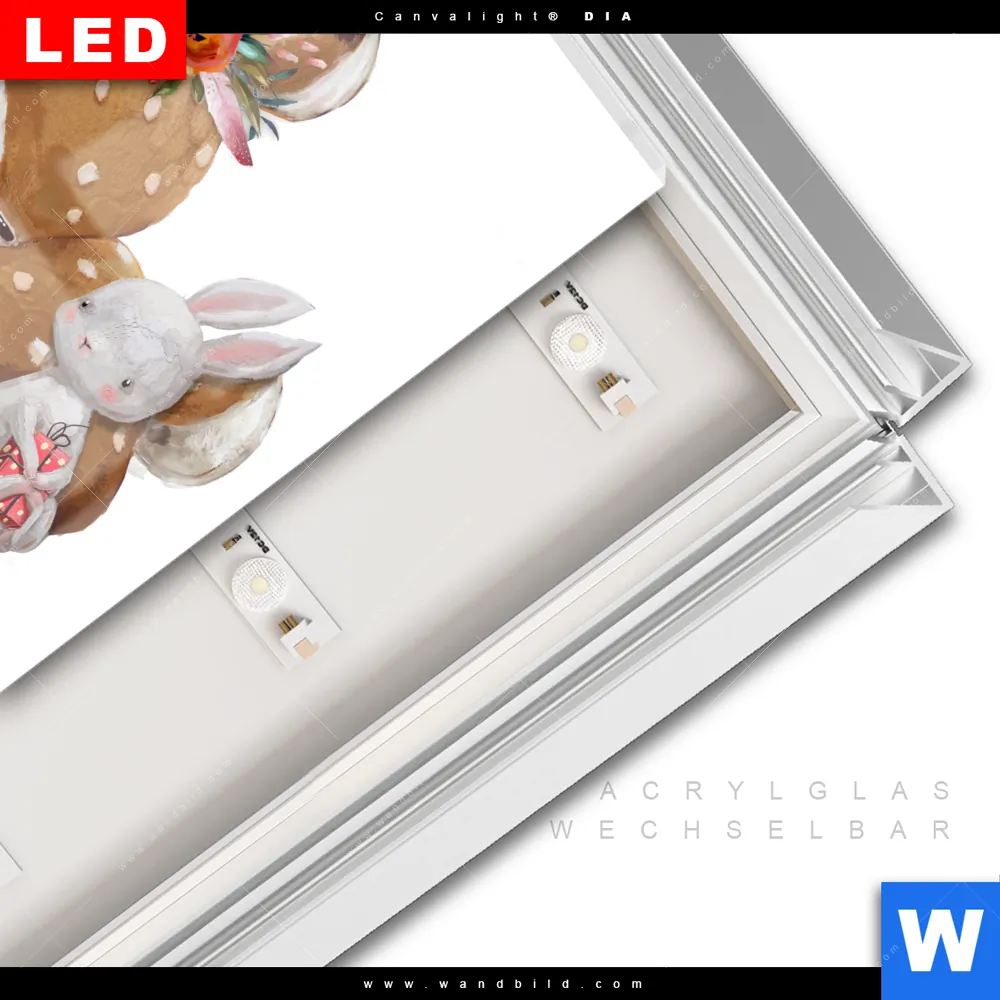 LED-Glasbild mit austauschbarem Acrylglas-Druck (Wechselbild)