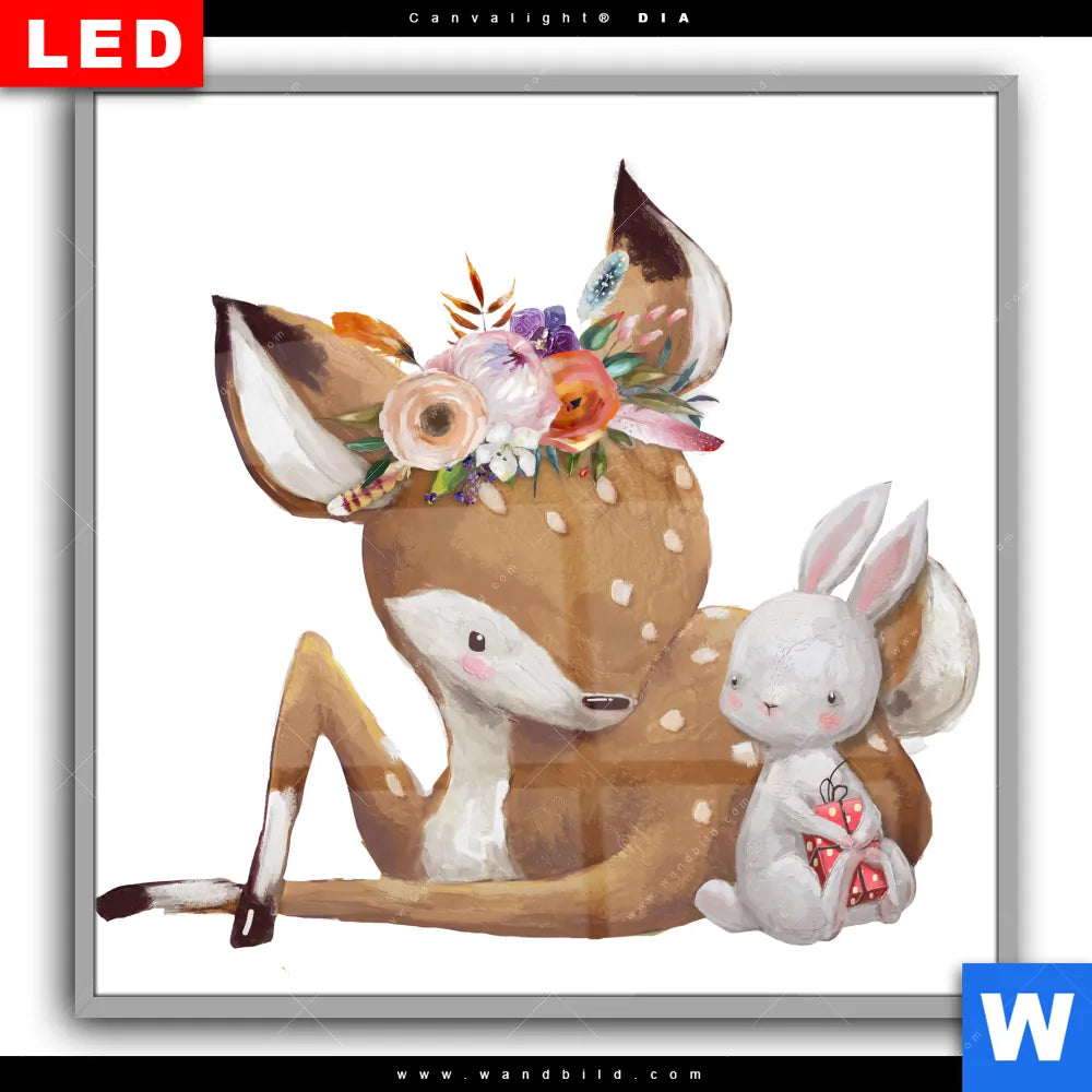 Canvalight® DIA Leuchtbild | Reh & Häschen | Quadrat