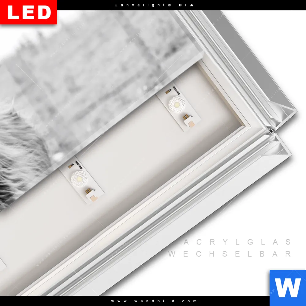LED-Glasbild mit austauschbarem Acrylglas-Druck (Wechselbild)
