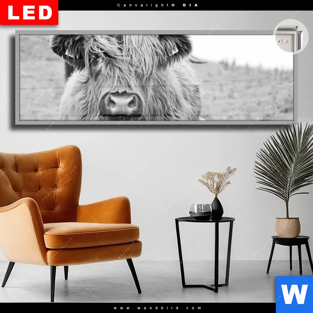Canvalight® DIA Leuchtbild | Rind im Hochland | Panorama