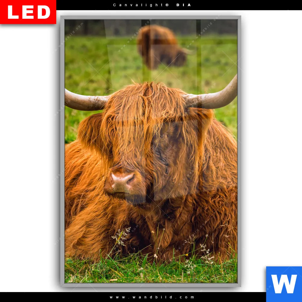 Canvalight® DIA Leuchtbild | Rind in den schottischen Highlands | Hochformat