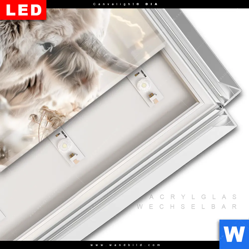 LED-Glasbild mit austauschbarem Acrylglas-Druck (Wechselbild)