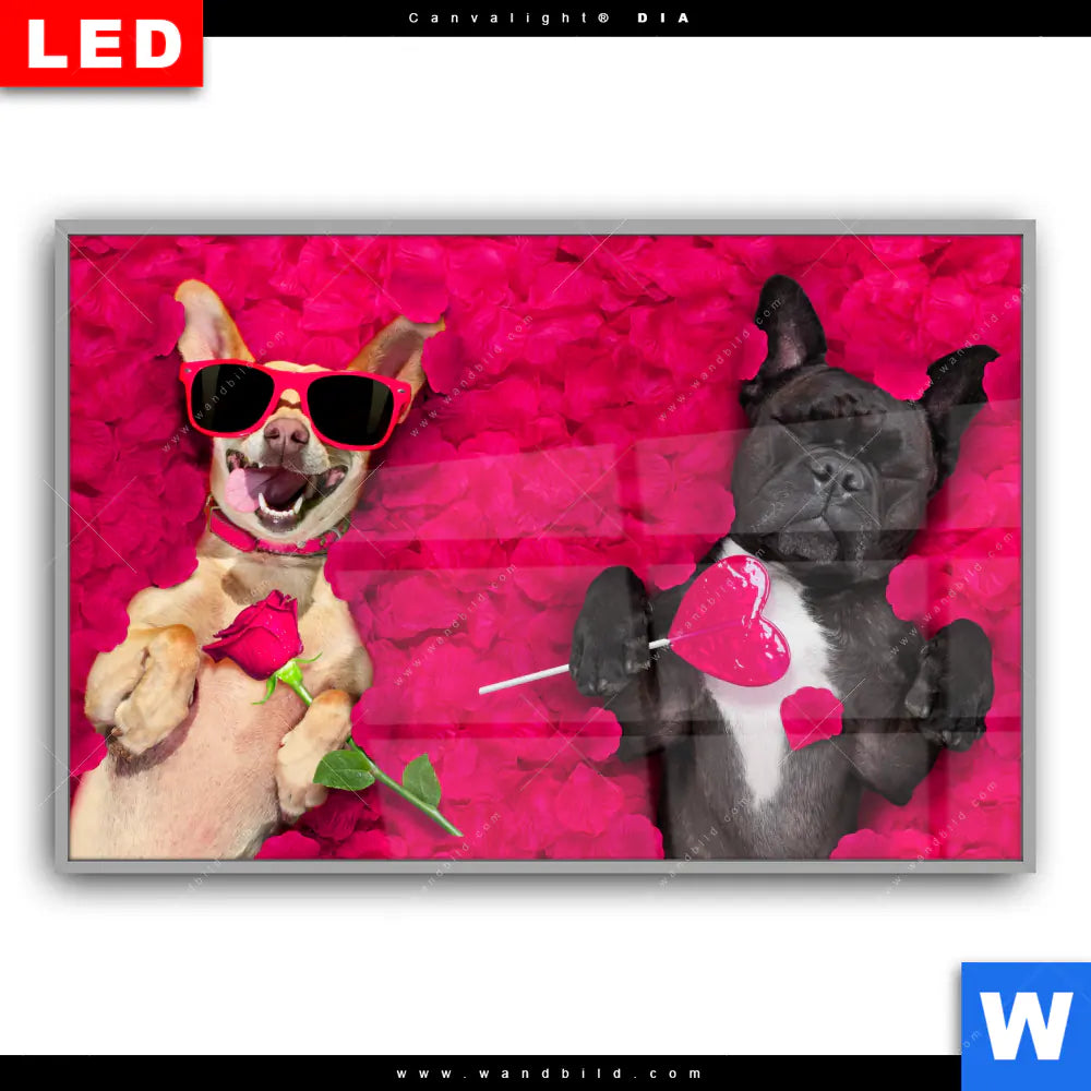 Canvalight® DIA Leuchtbild | Romantik mit süßen Hunden | Querformat