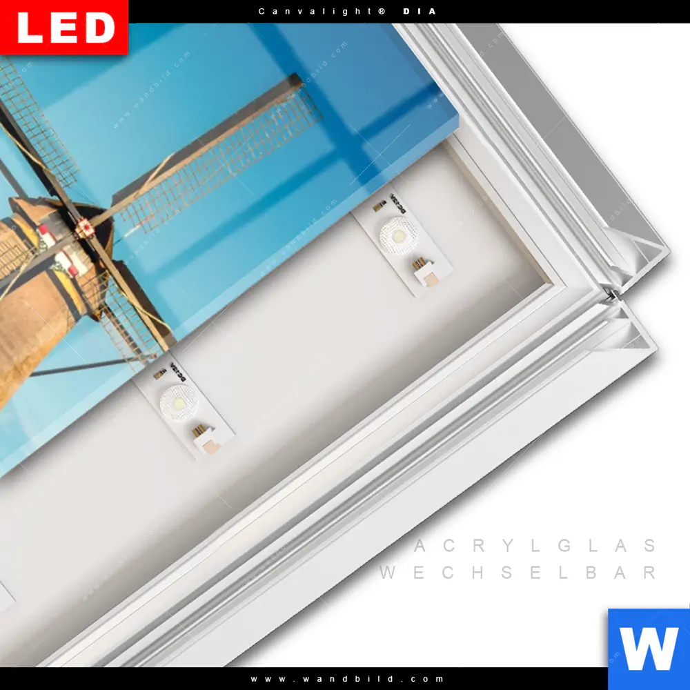 LED | Wechselrahmen-System | Acrylglas-Wechselbilder | DIA-Klapprahmen-Funktion
