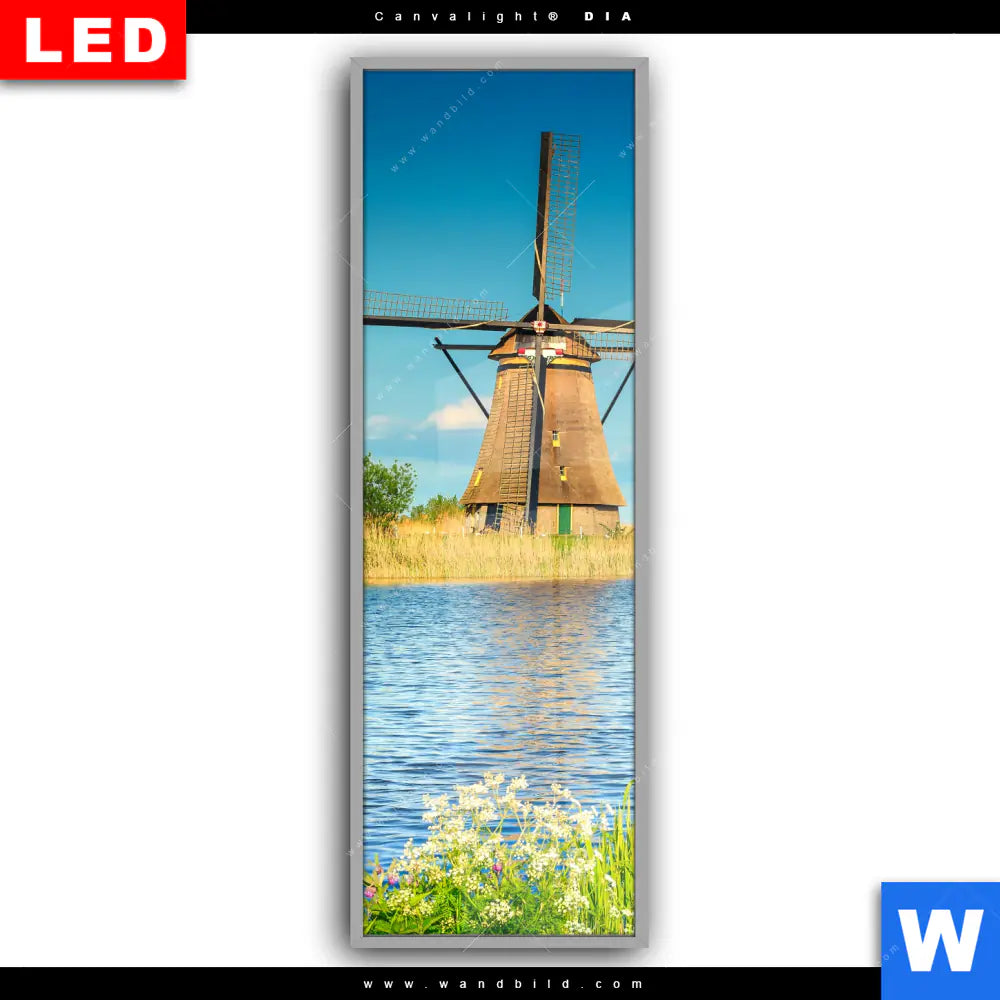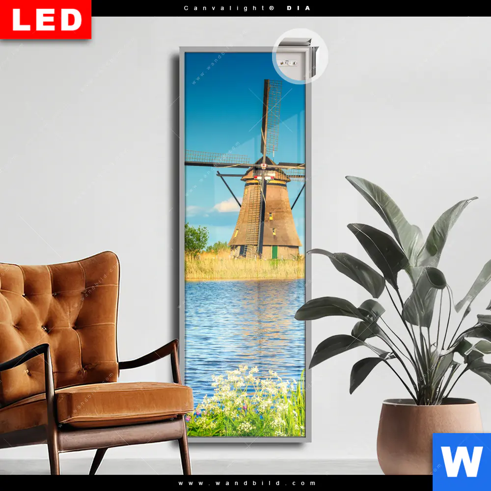 Canvalight® DIA Leuchtbild | Romantik zwischen Windmühlen | Schmal