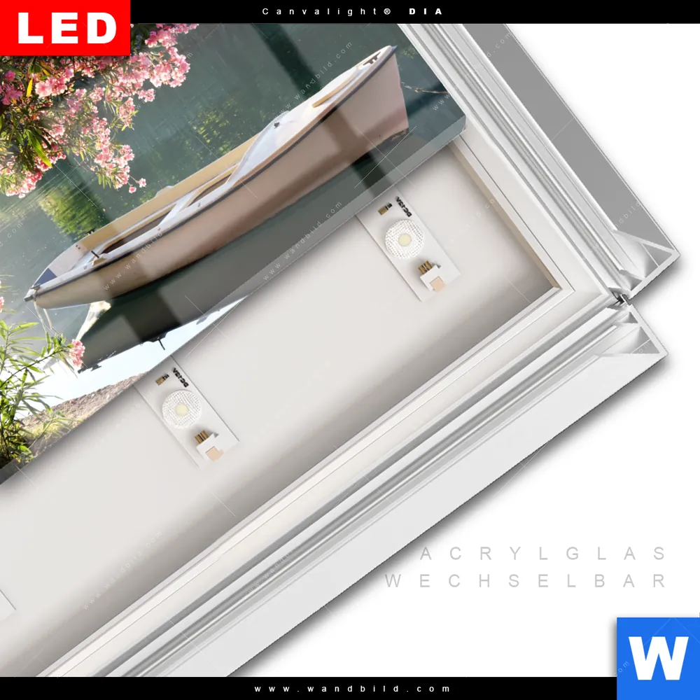 LED-Glasbild mit austauschbarem Acrylglas-Druck (Wechselbild)