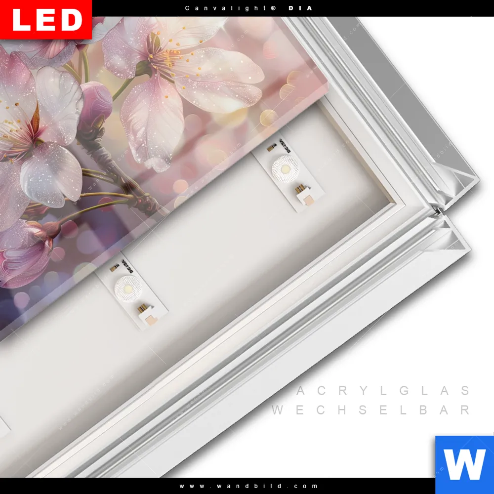 Canvalight® DIA Leuchtbild | Romantische Kirschblüten | Quadrat
