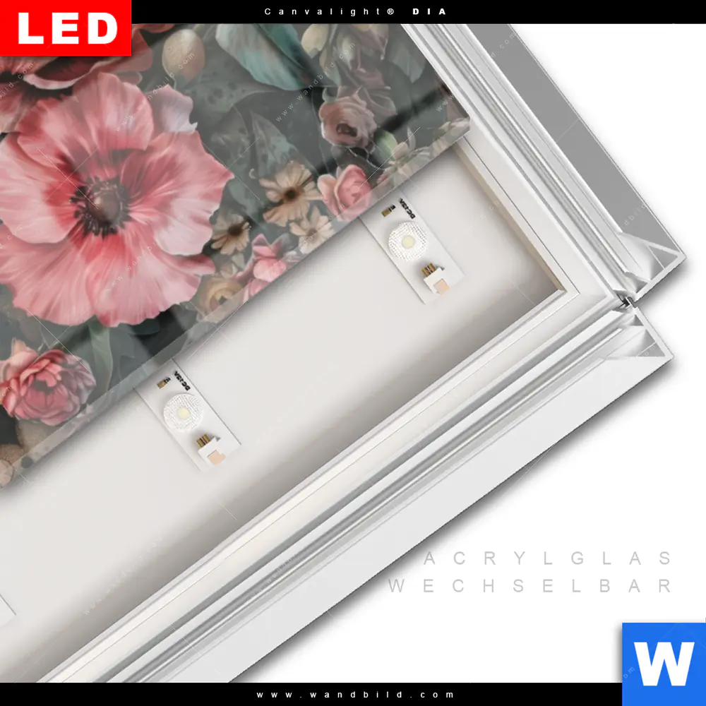 Canvalight® DIA Leuchtbild | Romantische Vintageblumen | Panorama