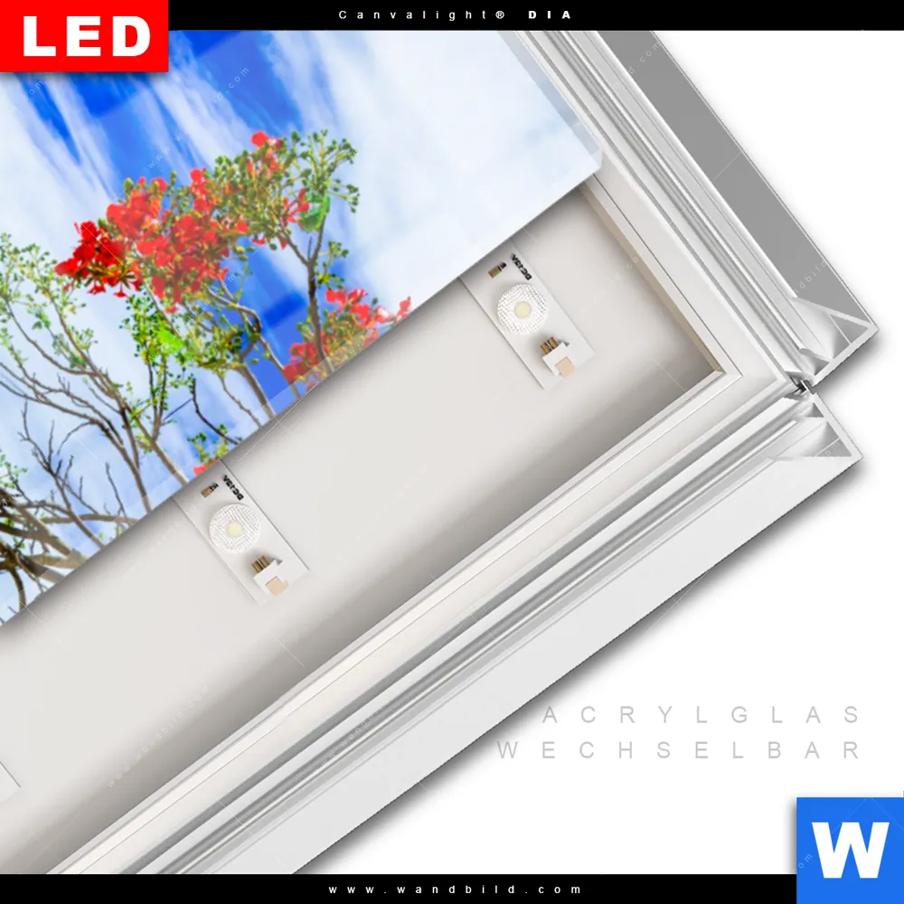 LED-Glasbild mit austauschbarem Acrylglas-Druck (Wechselbild)