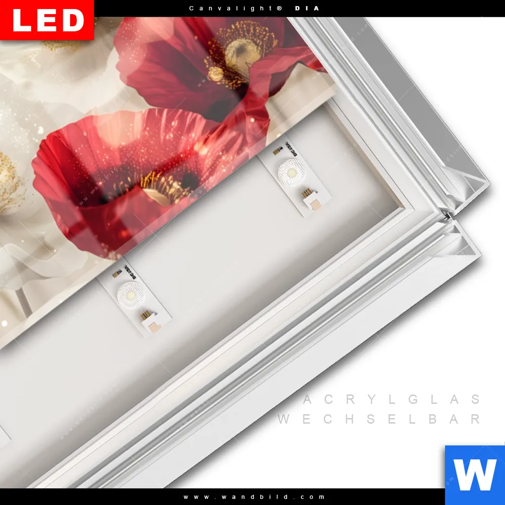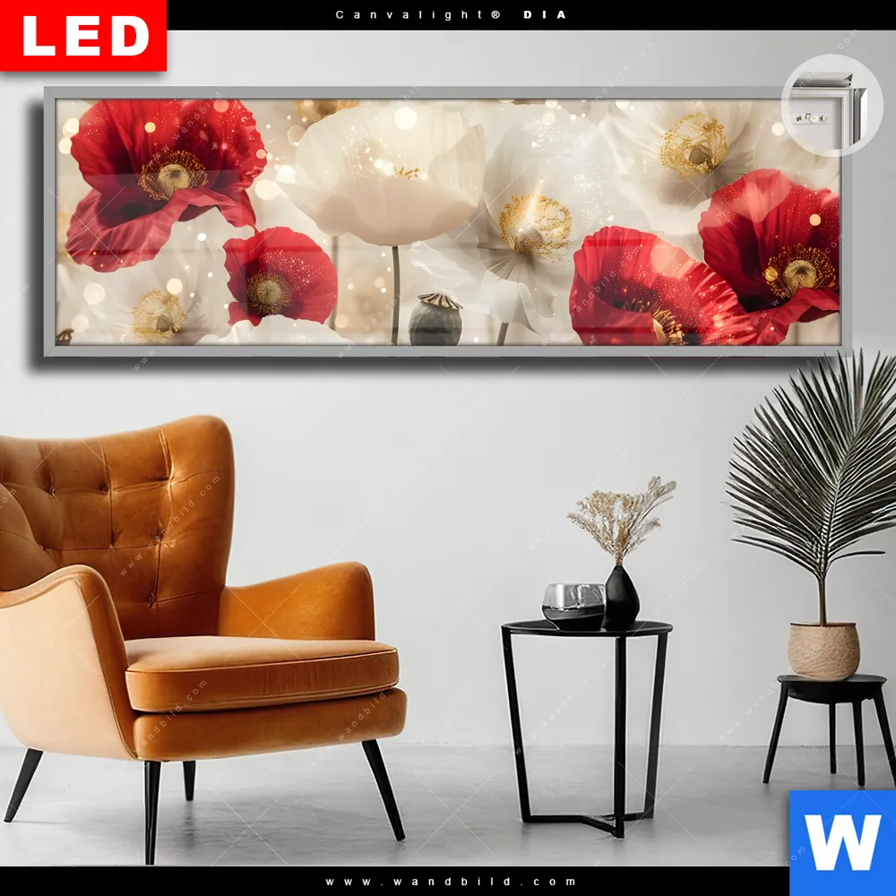 Canvalight® DIA Leuchtbild | Rote und weiße Mohnblumen | Panorama
