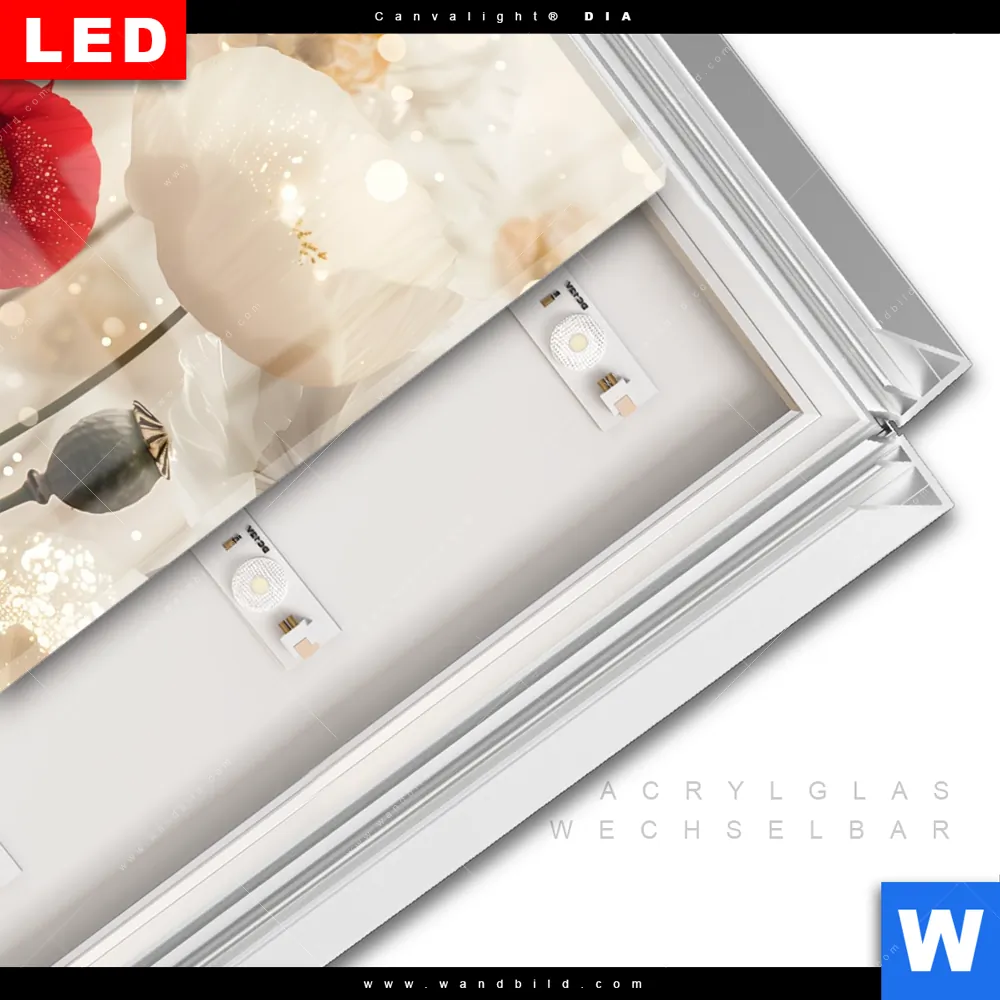 LED-Glasbild mit austauschbarem Acrylglas-Druck (Wechselbild)