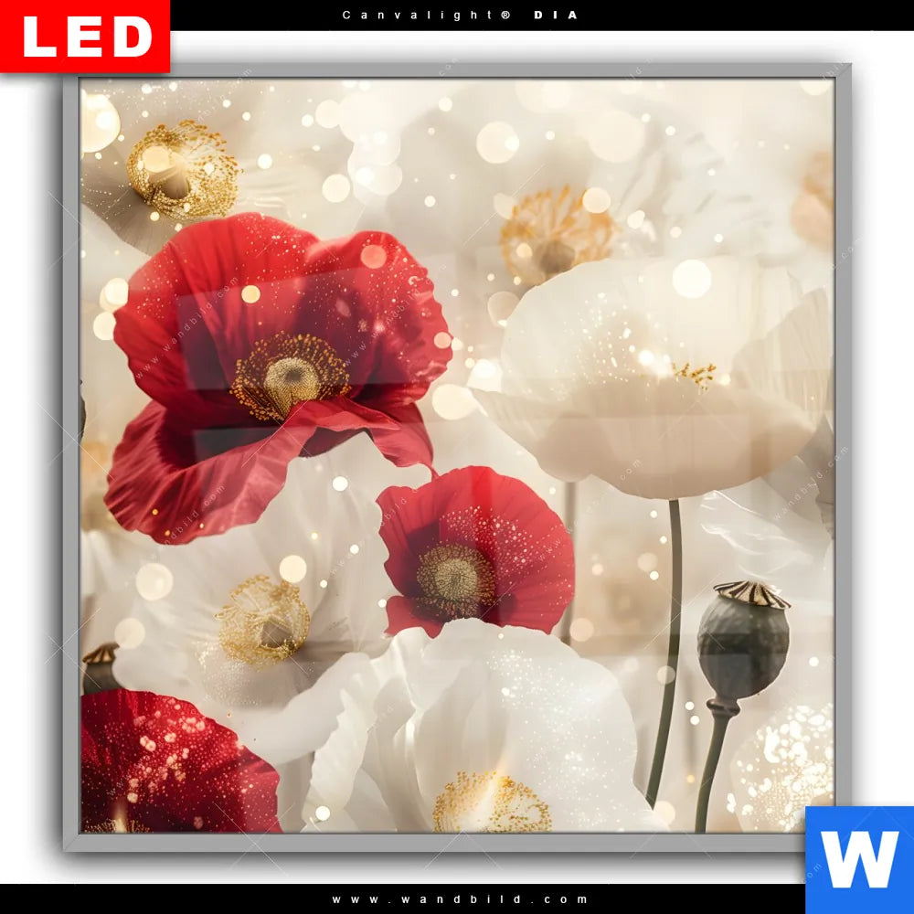 Canvalight® DIA Leuchtbild | Rote und weiße Mohnblumen | Quadrat