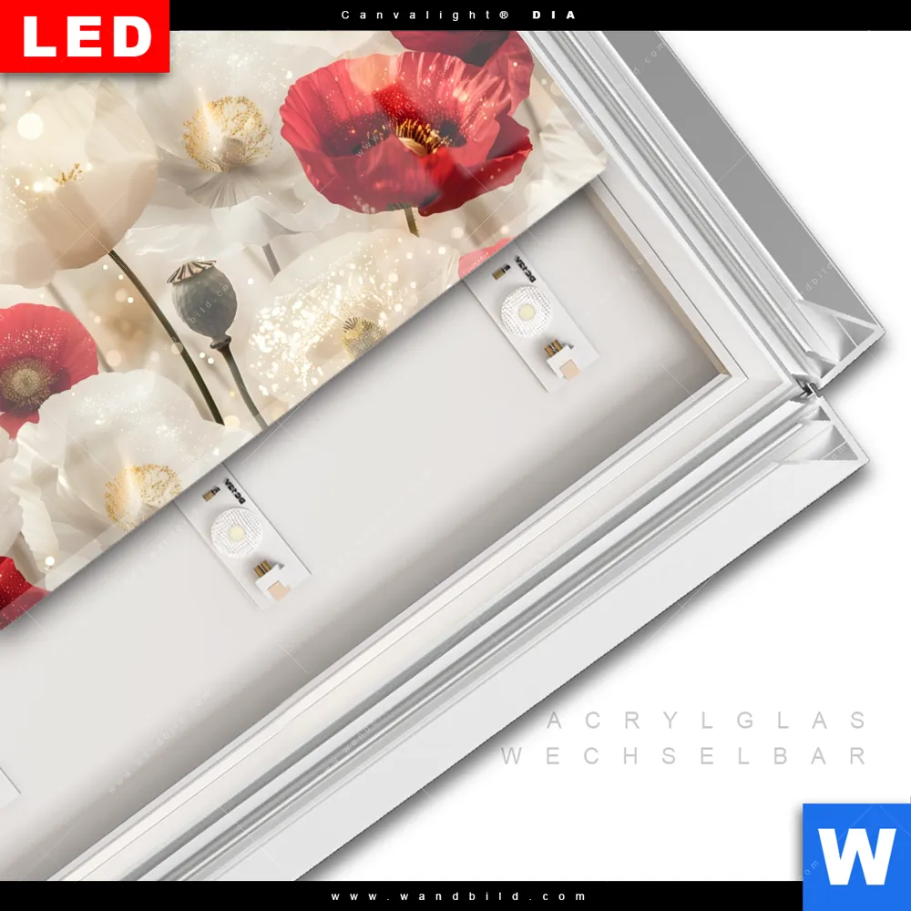 Canvalight® DIA Leuchtbild | Rote und weiße Mohnblumen | Querformat