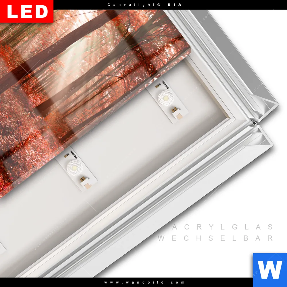 Canvalight® DIA Leuchtbild | Roter Herbstwald | Quadrat