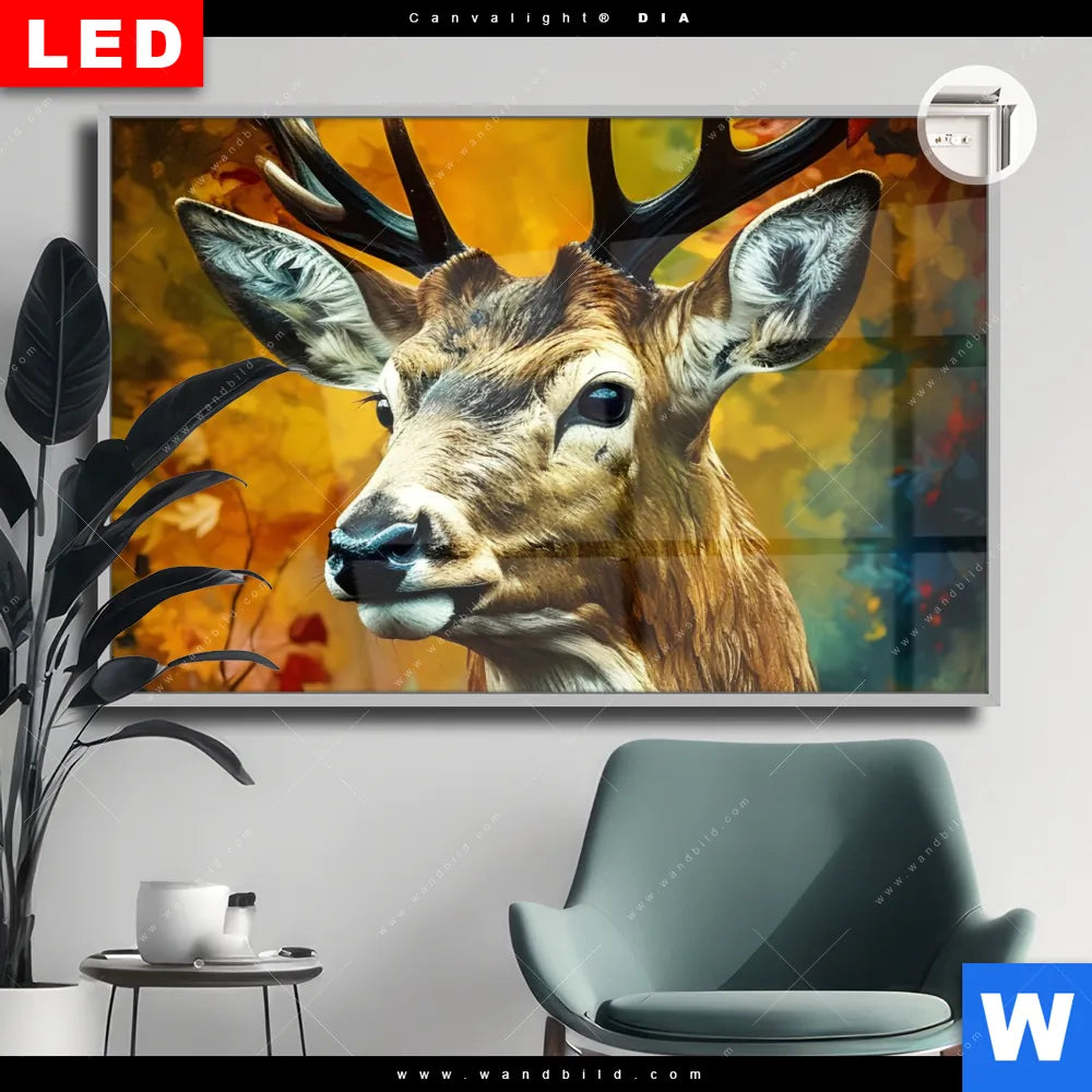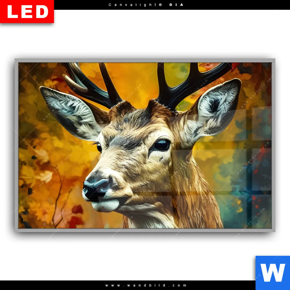 Canvalight® DIA Leuchtbild | Rothirsch im Herbstwald | Querformat