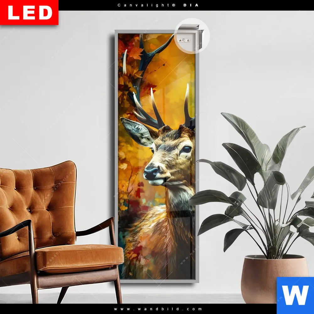 Canvalight® DIA Leuchtbild | Rothirsch im Herbstwald | Schmal
