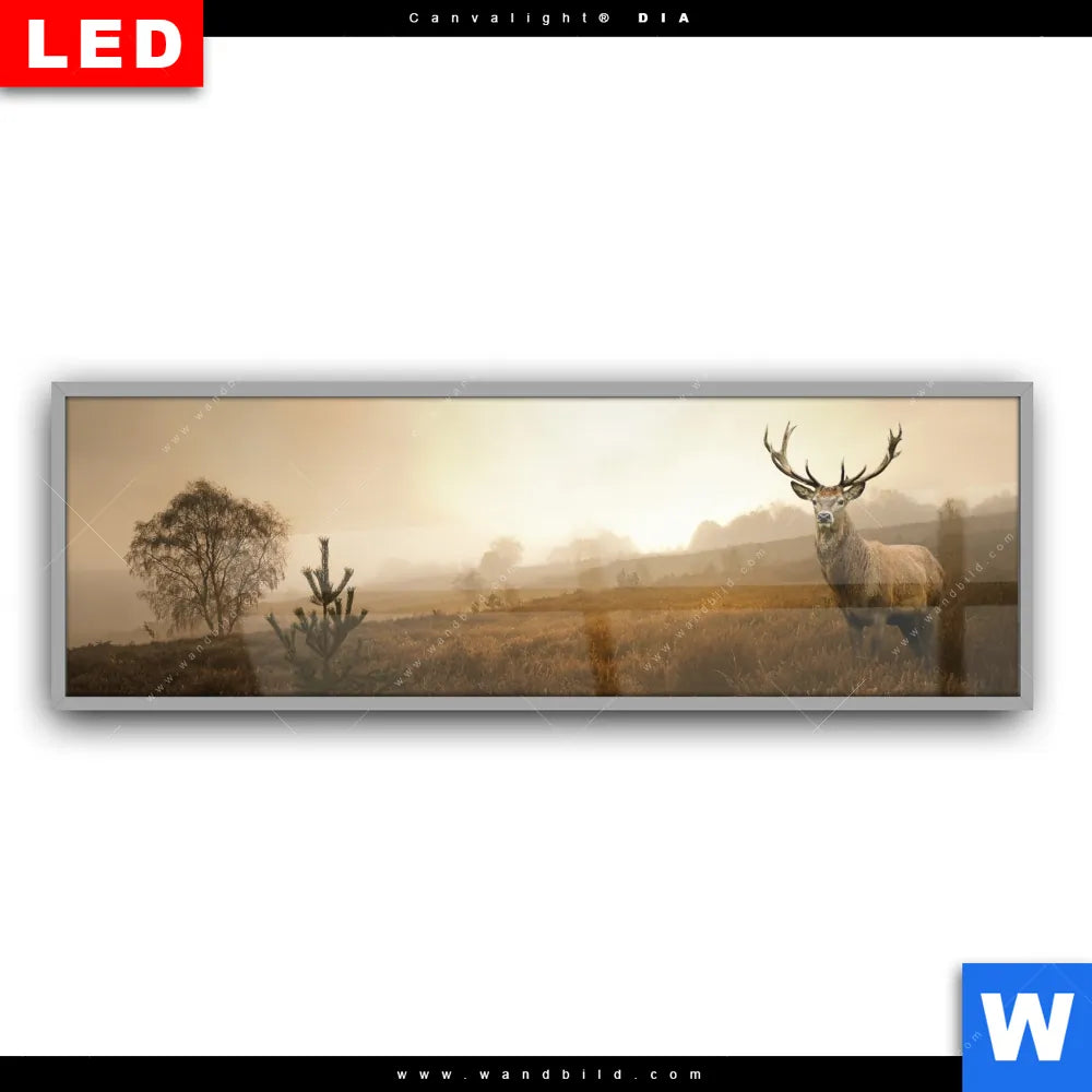 Canvalight® DIA Leuchtbild | Rothirsch im Nebel | Panorama