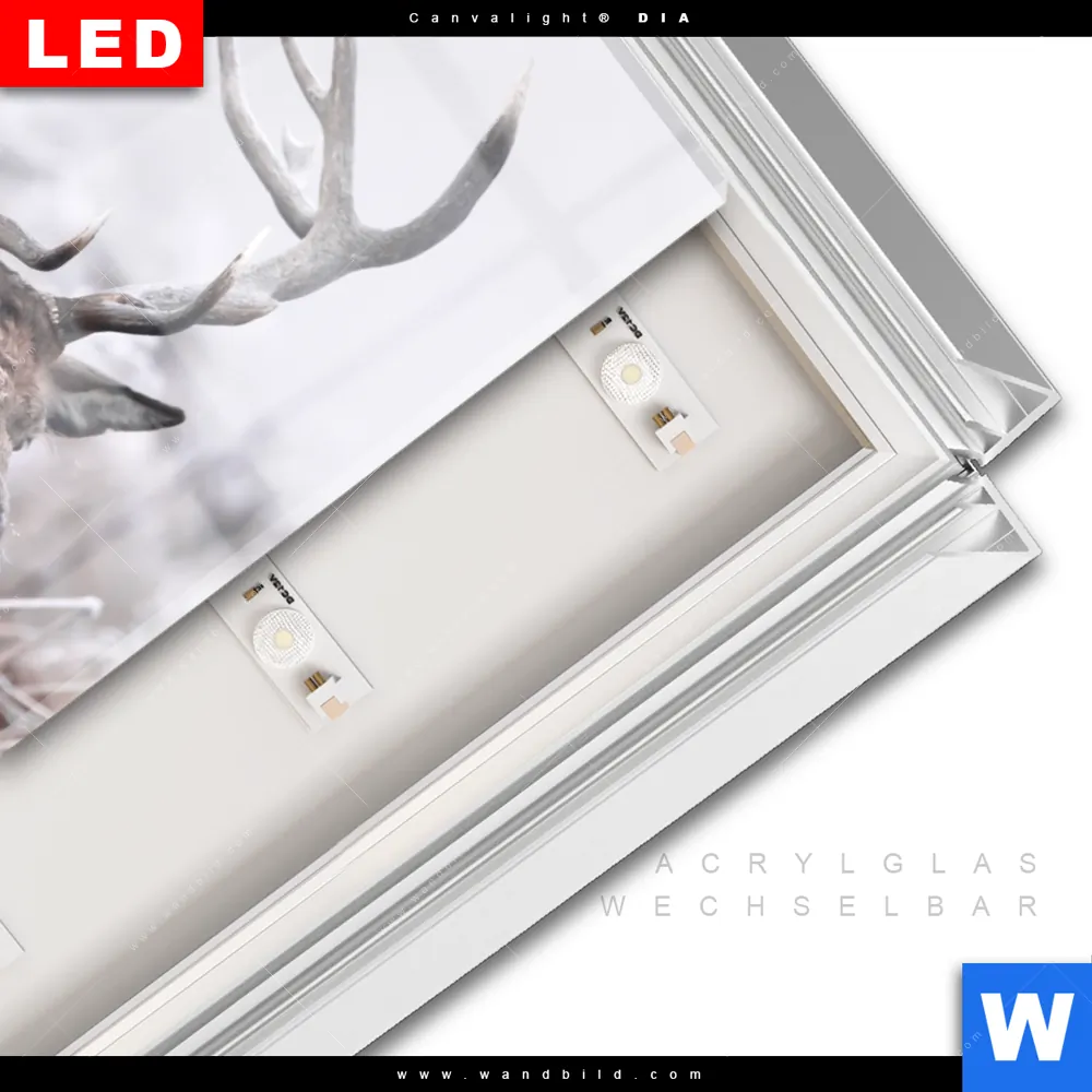 LED-Glasbild mit austauschbarem Acrylglas-Druck (Wechselbild)