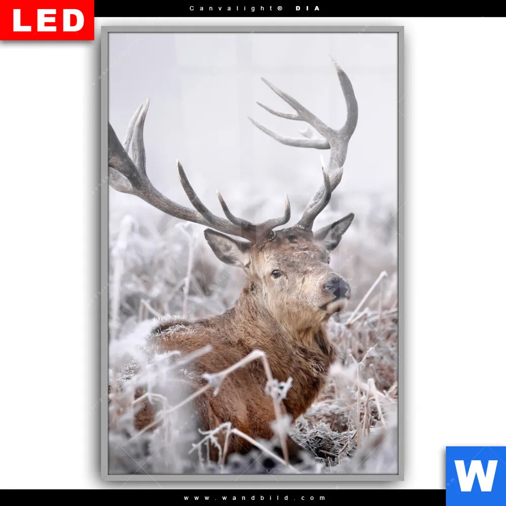 Canvalight® DIA Leuchtbild | Rothirsch im Winter | Hochformat