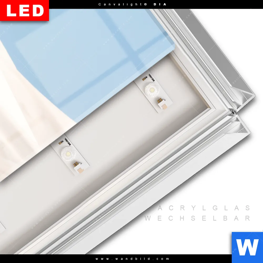 LED-Glasbild mit austauschbarem Acrylglas-Druck (Wechselbild)