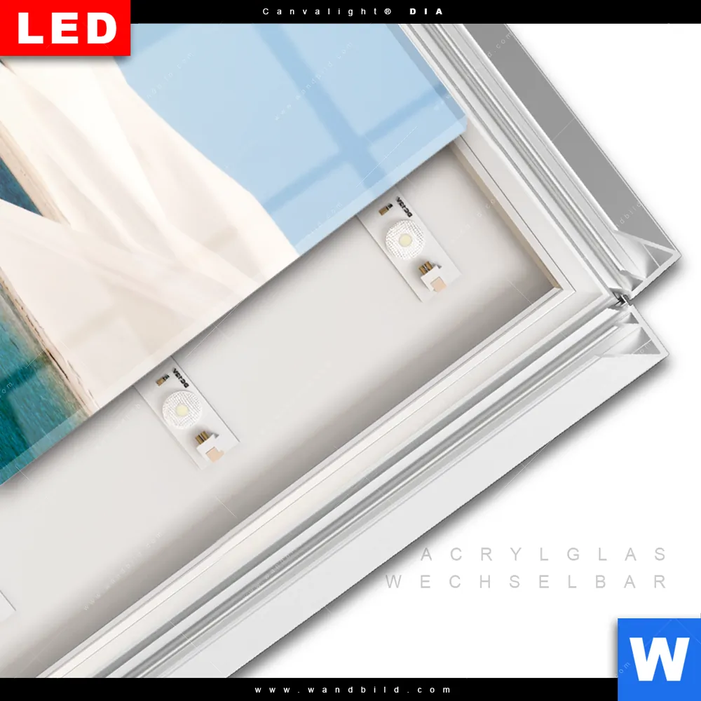 LED-Glasbild mit austauschbarem Acrylglas-Druck (Wechselbild)