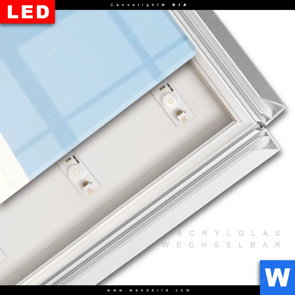 LED-Glasbild mit austauschbarem Acrylglas-Druck (Wechselbild)
