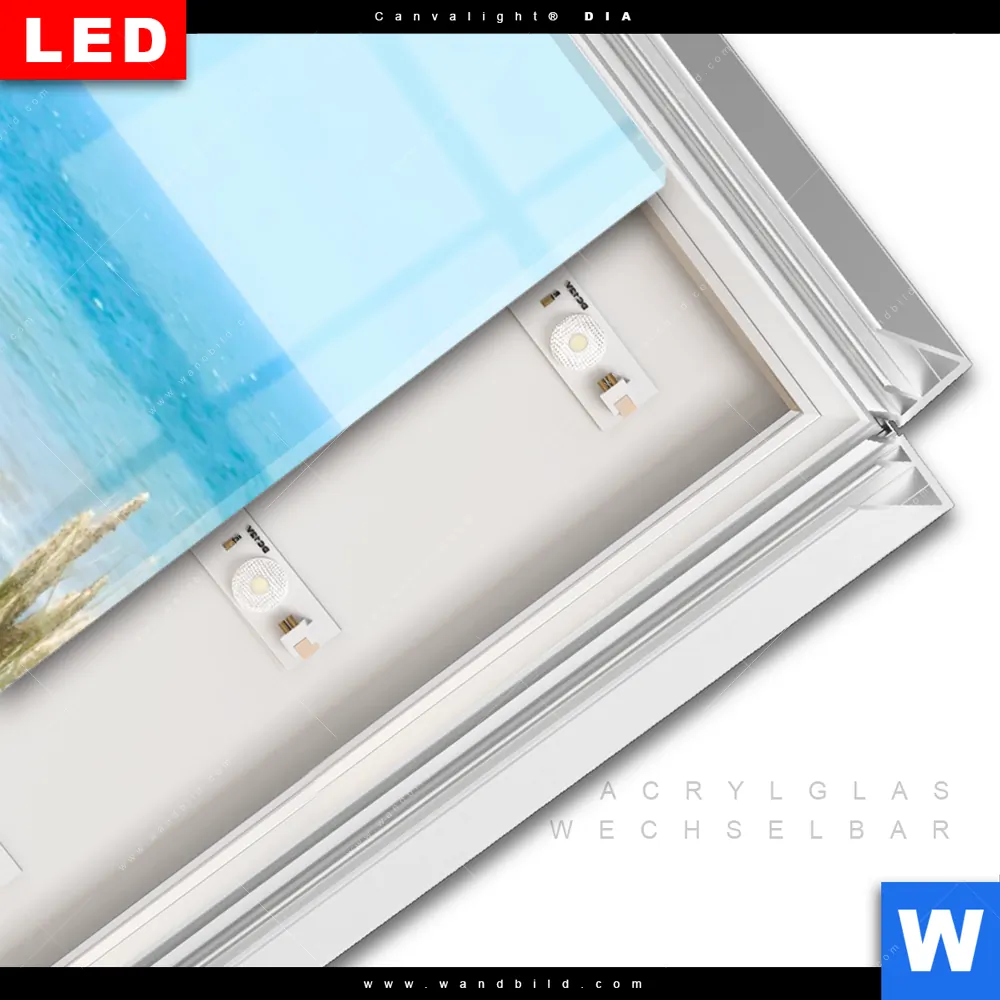 LED-Glasbild mit austauschbarem Acrylglas-Druck (Wechselbild)
