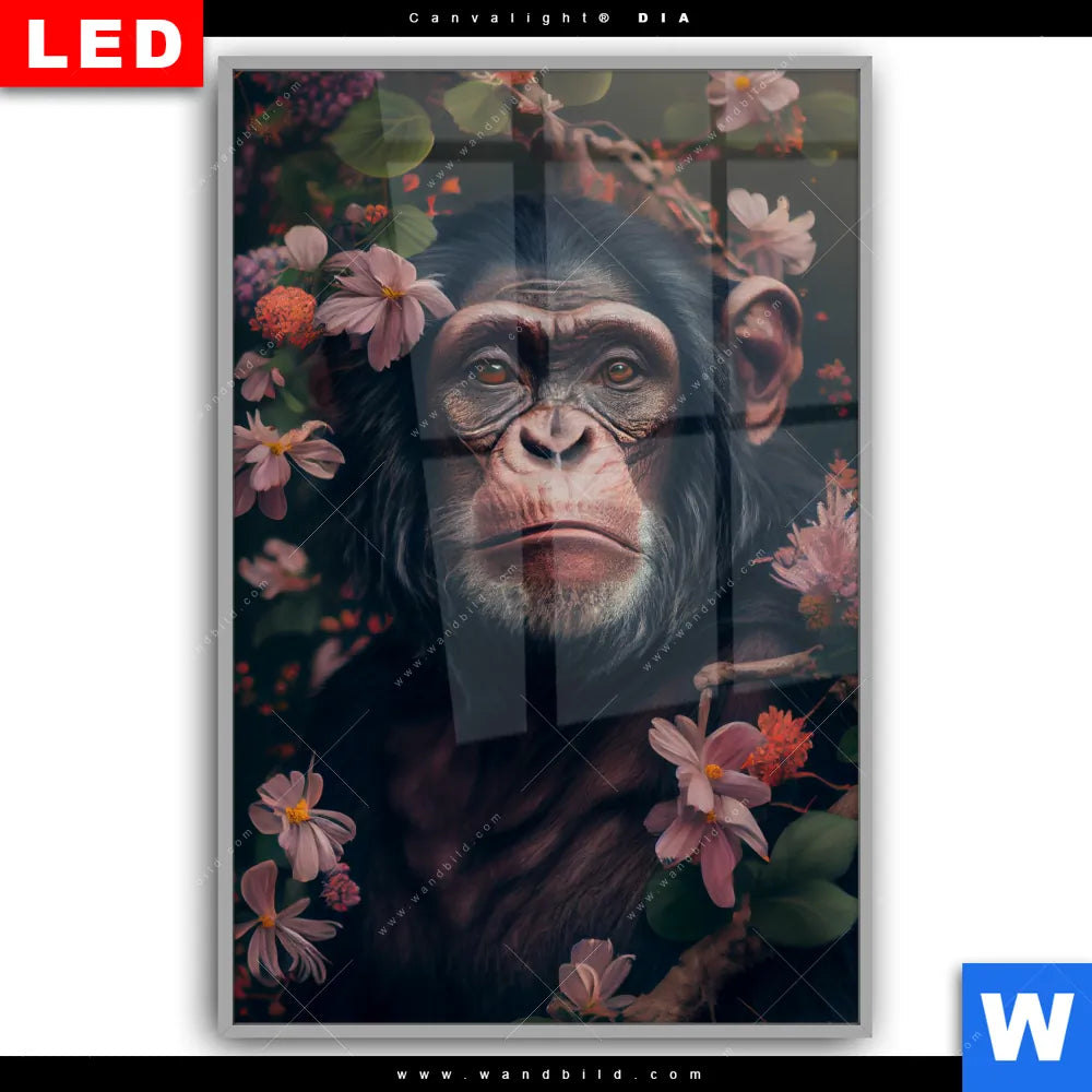 Leuchtbild Acrylglas Canvalight® DIA | Schimpanse zwischen Blumen | Hochformat