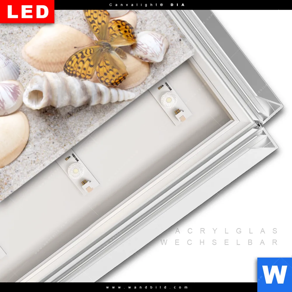 LED-Glasbild mit austauschbarem Acrylglas-Druck (Wechselbild)