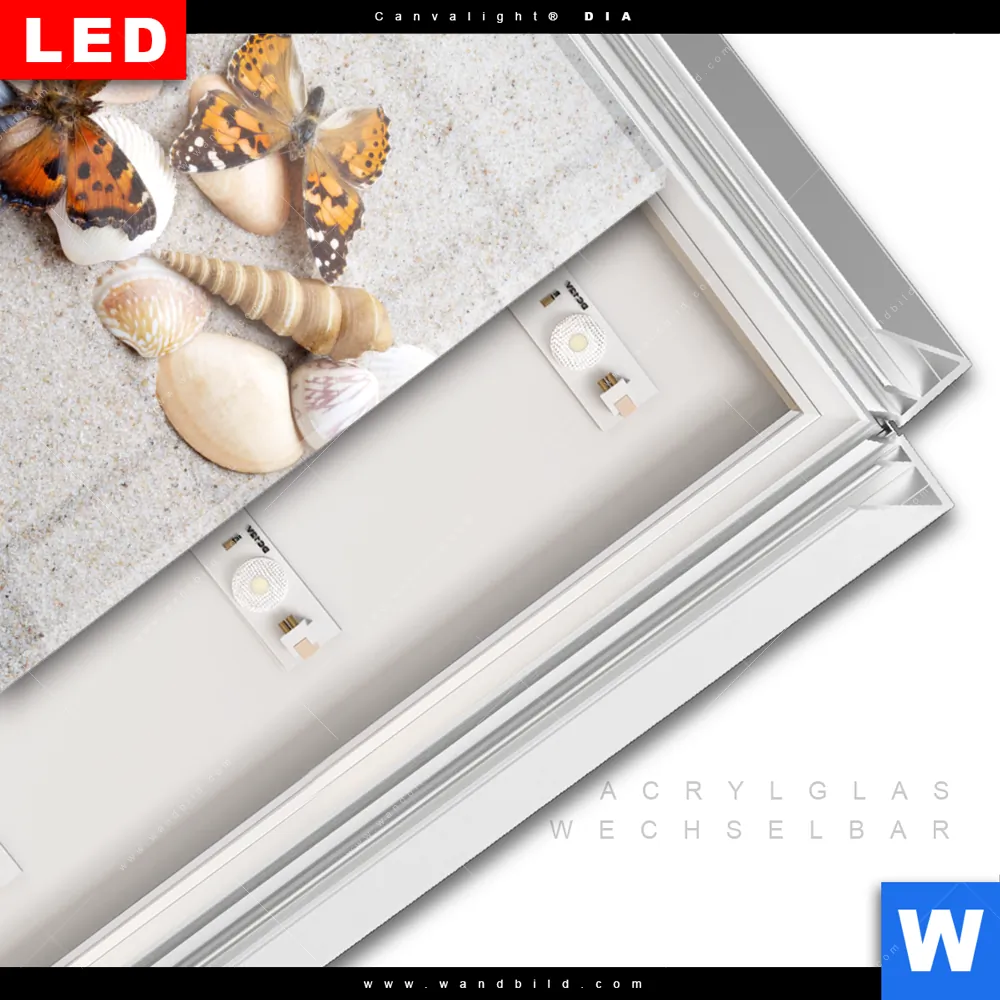 LED-Glasbild mit austauschbarem Acrylglas-Druck (Wechselbild)
