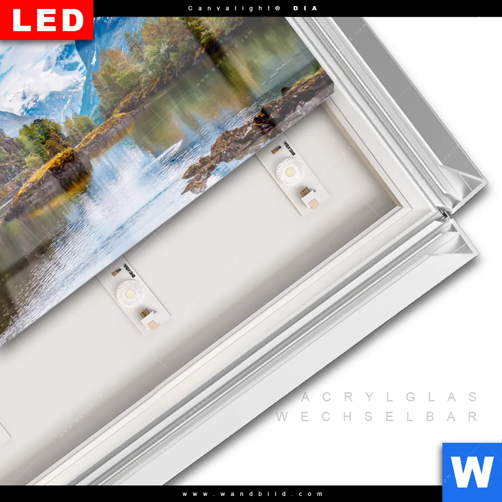 LED-Glasbild mit austauschbarem Acrylglas-Druck (Wechselbild)