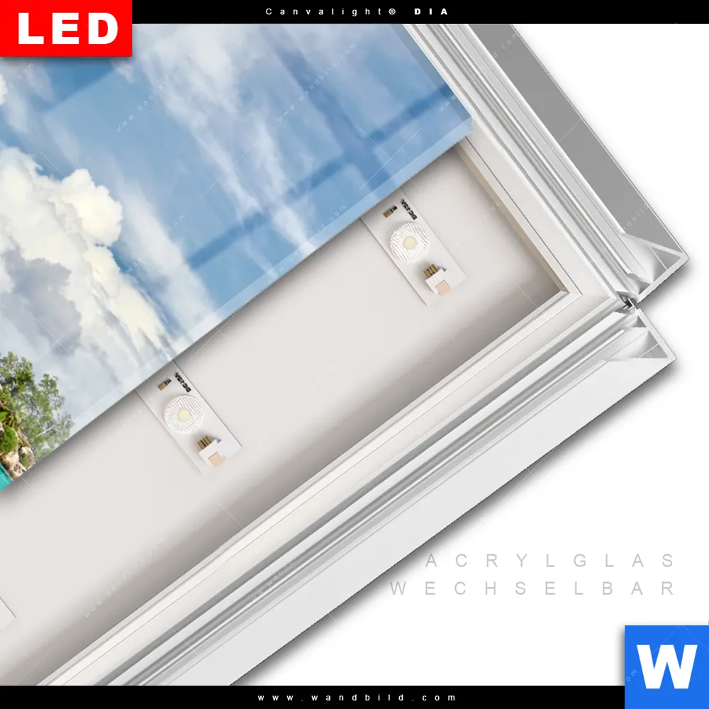 LED-Glasbild mit austauschbarem Acrylglas-Druck (Wechselbild)