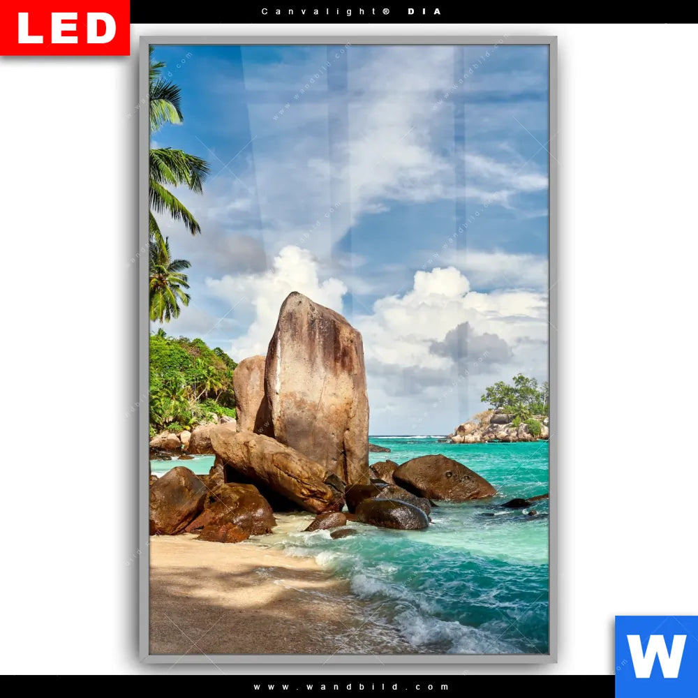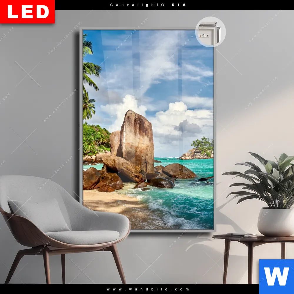 Canvalight® DIA Leuchtbild | Schöner Strand mit Palmen | Hochformat