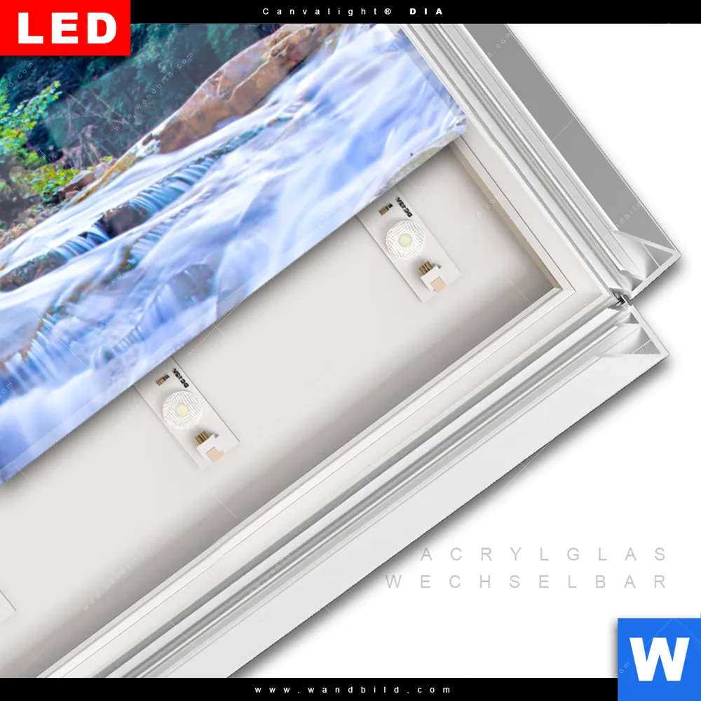 LED-Glasbild mit austauschbarem Acrylglas-Druck (Wechselbild)