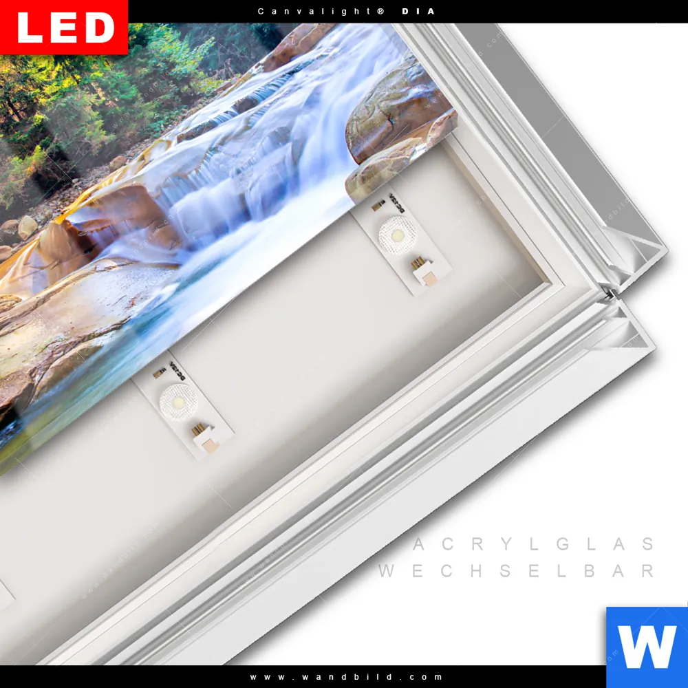 LED-Glasbild mit austauschbarem Acrylglas-Druck (Wechselbild)