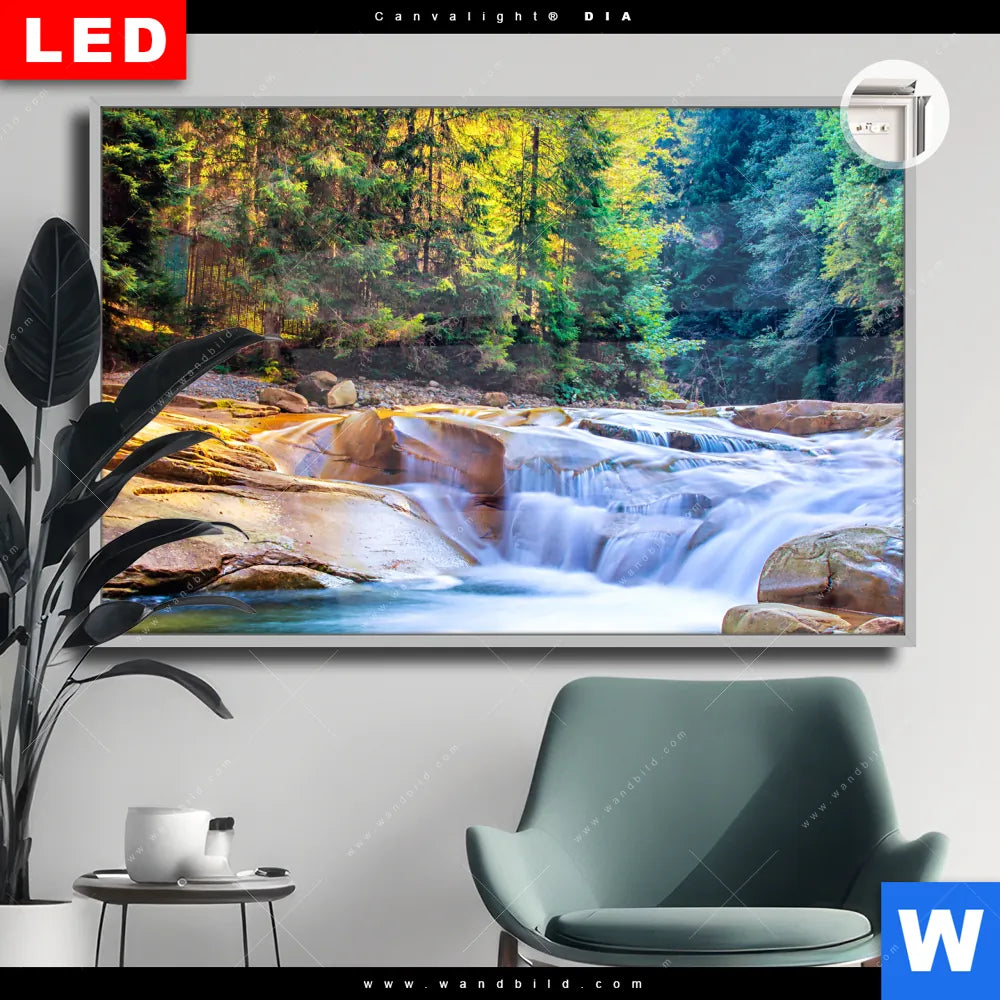 Canvalight® DIA Leuchtbild | Schöner Wasserfall im Wald | Querformat
