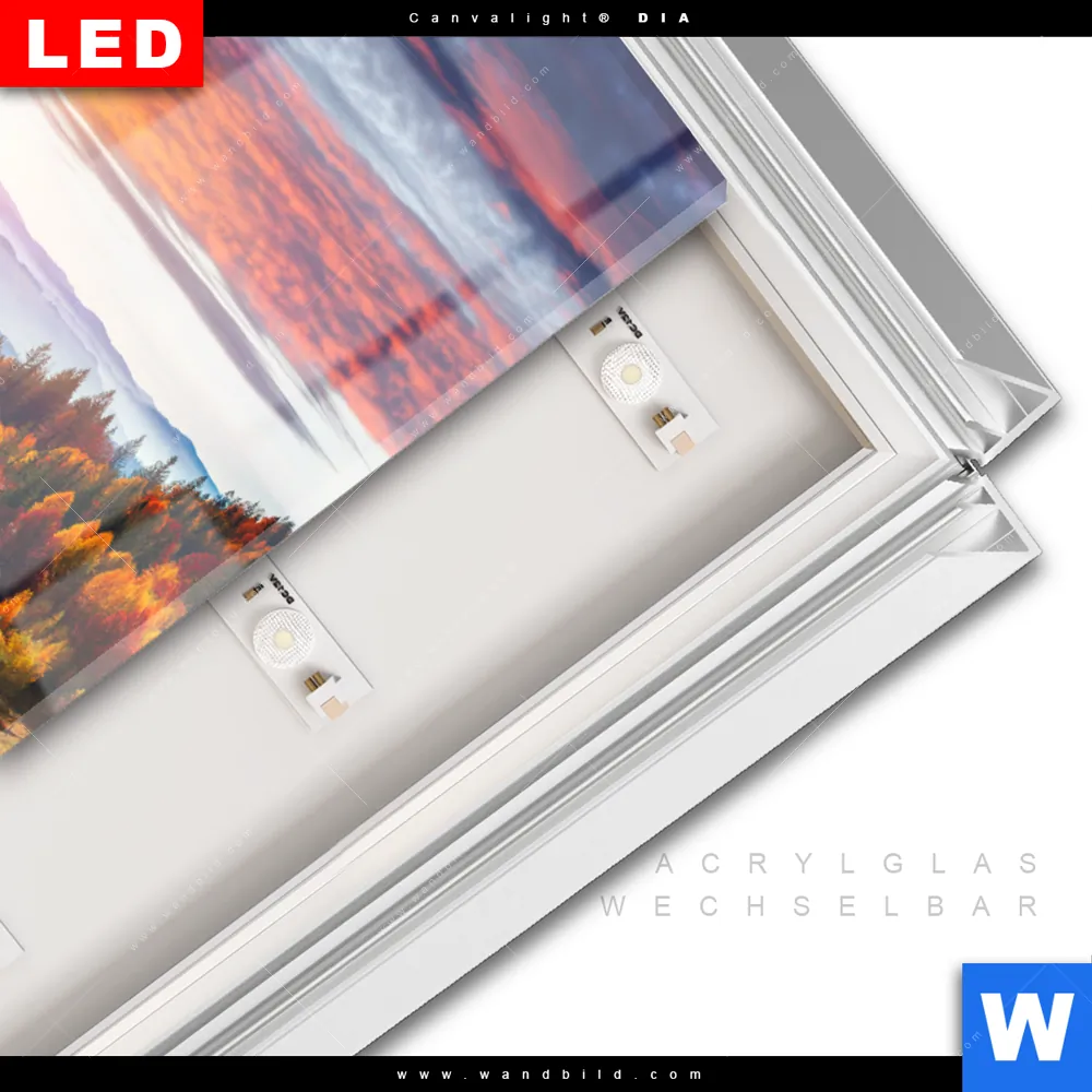 LED-Glasbild mit austauschbarem Acrylglas-Druck (Wechselbild)